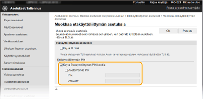 Valitse [Käytä Etäkäyttöliittymän PIN-koodia] -valintaruutu ja määritä PIN-koodi.