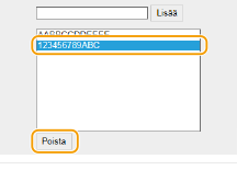 Valitse MAC-osoite ja napsauta [Poista].