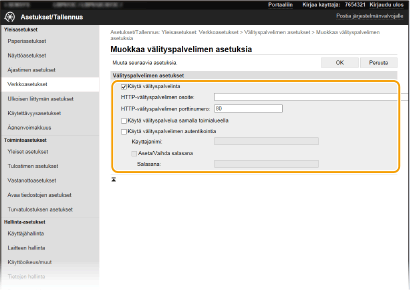 Valitse [Käytä välityspalvelinta]-valintaruutu ja määritä vaaditut asetukset.