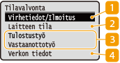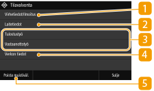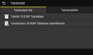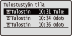 Näyttää valitun kohteen nykyisen tilan. Alla näytetään esimerkkinä <Tulostustyö>-näyttö.