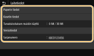 Näyttää laitteen tilan, esimerkiksi paperin määrän tai väriainekaseteissa jäljellä olevan väriaineen määrän.