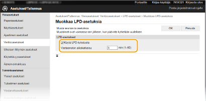 Valitse LPD-tulostuksen valintaruutu. Kun ei käytetä LPD-tulostusta, poista valintaruudun valinta.