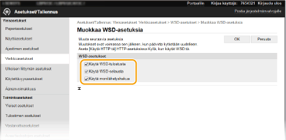 Tulostusprotokollien ja WSD-toimintojen määrittäminen