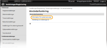 Vissa inställningar kan endast ändras när du är inloggad i systemhanteringsläge.