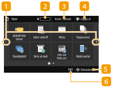 Återstående toner i tonerpatronernaVisar i olika steg hur mycket toner som återstår. Knappen är dold när Hem-skärmen är aktiv.