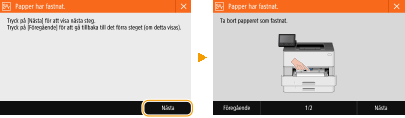) för att hitta enkla åtgärder. Se informationen i följande avsnitt om hur pappersstopp åtgärdas om du behöver ytterligare förklaring av procedurerna som visas på skärmen.