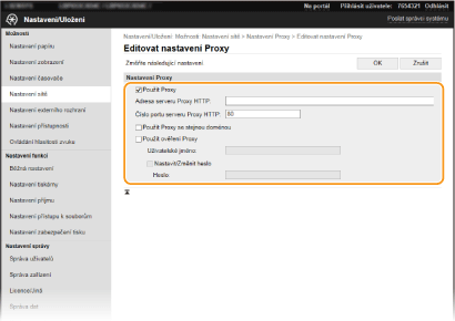 Zaškrtněte políčko [Použít Proxy] a zadejte požadovaná nastavení.