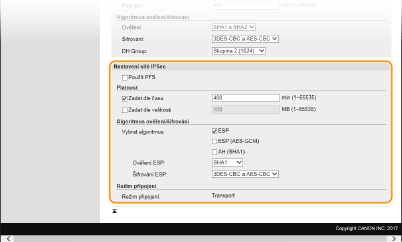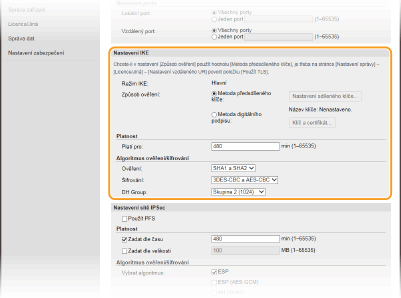 Zadejte nastavení [Platí pro] a [Ověření]/[Šifrování]/[DH Group].