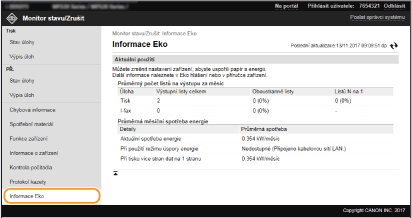 V seznamu budou uvedeny všechny právě tištěné dokumenty i dokumenty čekající na tisk, a to bez ohledu na nastavení správy ID oddělení.
