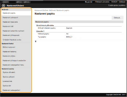 Prostřednictvím Vzdáleného uživatelského rozhraní můžete změnit různá nastavení zařízení. Většinu nastavení je možné zadat i prostřednictvím zařízení, existuje však několik nastavení, která lze zadat pouze prostřednictvím Vzdáleného uživatelského rozhraní. V této části je popsán základní postup, jak změnit nastavení zařízení pomocí Vzdáleného uživatelského rozhraní.