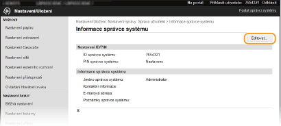 Některá nastavení můžete změnit pouze v případě, že jste přihlášeni v režimu správce systému.