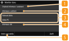 Umožňuje zobrazit aktuální stav vybraných položek. Jako příklad je níže uvedena obrazovka <Stav tiskové úlohy>.
