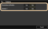 Alespoň u jedné zásuvky na papír vždy zadejte možnost <Zap>. Pokud u všech zásuvek na papír zadáte <Vyp>, nelze postup nastavení dokončit.
