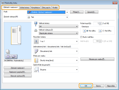 Podle potřeby zadejte nastavení tisku a klikněte na [OK].