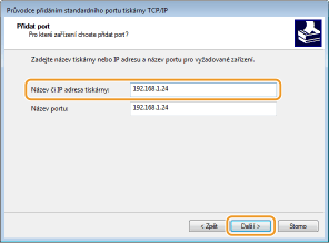 Zadejte IP adresu nebo název DNS zařízení a klikněte na tlačítko [Další].