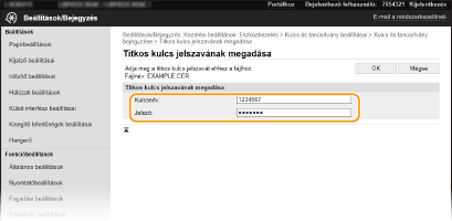 A készülékkel használni kívánt kulcs és tanúsítvány, valamint a hitelesítésszolgáltatói tanúsítvány a hitelesítésszolgáltatótól szerezhetők be. Telepítse és regisztrálja a készülékkel használni kívánt, korábban már beszerzett kulcsot és a tanúsítványfájlt, valamint a hitelesítésszolgáltatói tanúsítványfájlt a Távoli felhasználói felületet segítségével. Már előre ellenőrizze, hogy milyen feltételek megléte szükséges a készüléken a kulcs és a tanúsítvány, valamint a hitelesítésszolgáltatói tanúsítvány használatához (