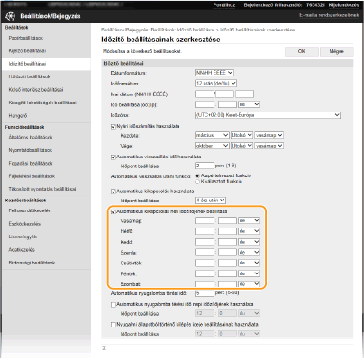 *Ha a készüléket nem tud automatikusan kikapcsolni a megadott időpontban, akkor legfeljebb tíz percen keresztül percenként újra megkísérli a kikapcsolást. Ha a kikapcsolás tíz kísérlet után sem sikerül, akkor az automatikus kikapcsolás az adott napon már nem lehetséges.