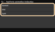 Válassza a <Papírforrás automatikus kiválasztása>/<Fiók automatikus kiválasztása Be/Ki> lehetőséget.