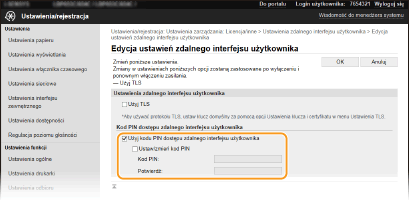 Jeżeli inicjowane są <Ustawienia zarządzania>Kod PIN do dostępu do Zdalnego interfejsu użytkownika jest także inicjowany. Po inicjalizacji należy zresetować kod PIN. <Zainicjuj menu>