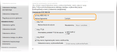 Zaznacz pole wyboru [Użyj IEEE 802.1X] i wprowadź nazwę logowania w polu tekstowym [Nazwa logowania].