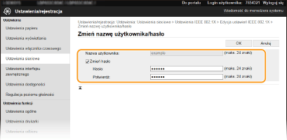 Konfiguracja ustawień uwierzytelniania zgodnego z IEEE 802.1X