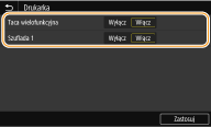 Należy zawsze wskazać opcję <Włącz> co najmniej dla jednej szuflady na papier. Jeśli wybrana zostanie opcja <Wyłącz> dla wszystkich szuflad na papier, nie będzie można zakończyć procedury ustawiania.
