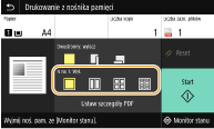 ![]() W przypadku pliku PDF można wydrukować 9 lub 16 stron danych obrazu na jednej stronie arkusza papieru, korzystając z opcji <N na 1> w obszarze <Ustaw szczegóły PDF>.
