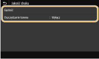 Wybranie opcji <Włącz> pozwala drukować w trybie oszczędzania toneru. Wybierz opcję <Włącz>, gdy chcesz sprawdzić układ strony lub inne elementy wyglądu przed przystąpieniem do końcowego drukowania dużego zadania. ![]() Jeżeli opcja <Oszczędzanie tonera> jest ustawiona na <Włącz>, opcja <Gęstość> nie będzie dostępna.