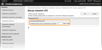 Zaznaczenie tego pola wyboru umożliwia wydruk za pomocą protokołu LPD. Jeśli drukowanie za pomocą protokołu LPD nie jest używane, należy usunąć zaznaczenie tego pola wyboru. [Użyj wydruku RAW]