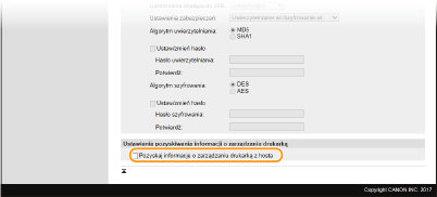 Określ ustawienia pozyskiwania informacji o zarządzaniu drukarką.