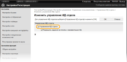Установите флажок, чтобы включить управление идентификаторами (ИД) отделов. Если в использовании функции управления ИД отделов нет необходимости, снимите флажок.