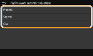 Izvēlieties <Papīra avota automātiskā atlase>/<Atvilktnes aut. izv. iesl./izsl.>.