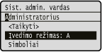 arba pasirinkite <Simboliai> ir paspauskite , jei įvesto teksto tipas yra <A> arba <a> – ekrane matysite galimus įvesti simbolius. Naudodami / / / pasirinkite norimą naikinti simbolį ir paspauskite . |