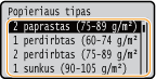 modelis su nespalvotu skystųjų kristalų ekranu pasirinkite popieriaus tipą.