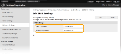 Serverio valdymo blokas (SMB) – tai išteklių, pvz., failų ir spausdintuvų, bendrinimo su keliais tinklo įrenginiais protokolas. Privalote naudoti jį, jeigu konfigūruojate aparatą kaip SMB tinkle bendrinamą spausdintuvą. Atsižvelgiant į tinklą, gali būti, kad turėsite nustatyti „NetBIOS“ ir darbo grupės pavadinimus.