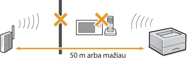 Ar tarp aparato ir belaidžio maršrutizatoriaus yra kokių nors kliūčių, pvz., sienų?