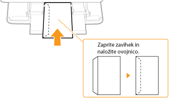Kuverte naložite tako, da je rob z zavihkom obrnjen proti levi strani, kot kaže slika.
