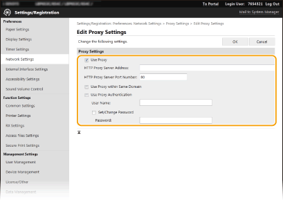 За да разрешите удостоверяването от прокси сървъра, поставете отметка и въведете потребителско име от буквено-цифрени знаци в полето [User Name].