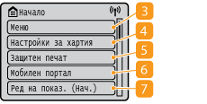 <Ред на показ. (Нач.)>Позволява ви да промените реда, в който се показват бутоните на екрана Начало. Персонализиране на екрана Начало