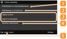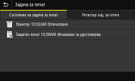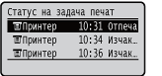 Показва текущото състояние на избрания елемент. Екранът <Задача за печат> е показан по-долу като пример.