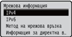 Показва мрежовите настройки, като напр. IP адреса на устройството, и състоянието, като напр. условията за безжична LAN комуникация.