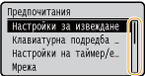Можете да променяте различни настройки на дисплея, като например езика на показване: <Настр-ки за извеждане>
