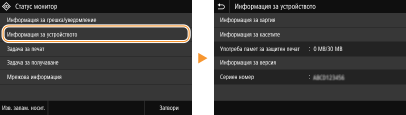 Можете да промените екрана, който се показва автоматично, когато устройството не се използва за определен период от време: <Функция след автоматично нулиране>