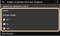 ![]() ![]() Ако запаметите често използвани от вас формати хартия в бутони от <S1> до <S3>, можете да ги извикате с едно докосване. Запаметяване на потребителски формат за хартията