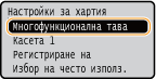След запаметяване на настройките за хартия по подразбиране, екранът за настройки на хартията не се извежда при зареждане на хартия и винаги се използва една и съща настройка. Ако заредите различен формат или тип хартия, без да променяте настройките за хартията, устройството може да не печата правилно. За да избегнете този проблем, изберете <Задаване при зареждане на хартия> на стъпка 3 и след това заредете хартията.
