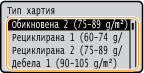 Форматите на хартията, запаметени чрез процедурата по-горе, се показват в екрана за избор на формат на хартията за касетата за хартия или многофункционалната тава.