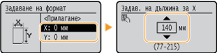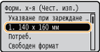 Форматите на хартията, запаметени чрез процедурата по-горе, могат да бъдат извикани, когато сте избрали настройка <Потребителска> в екрана за избор на формат на хартията за касетата за хартия или многофункционалната тава.