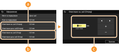<Отместване къс ръб (Отпред)>/<Отместване дълъг ръб(Отпред)>