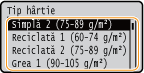 Pe model LCD alb-negru, selectaţi în continuare tipul de hârtie.