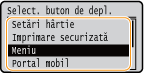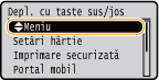 O apăsare lungă pe <Mutare st.> sau pe <Mutare dr.> deplasează butonul selectat continuu.